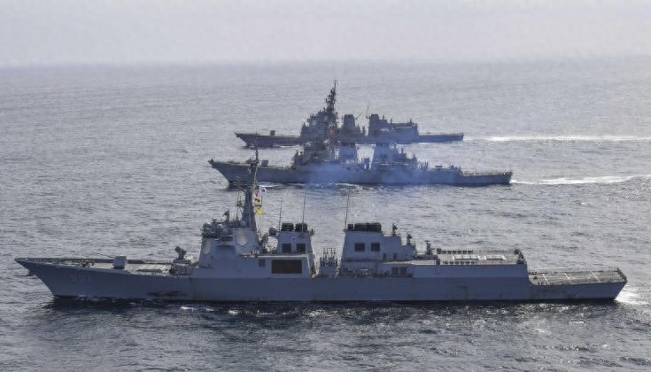 South Korean and U.S. navies conduct joint exercises with the Japan Maritime Self-Defense Force
