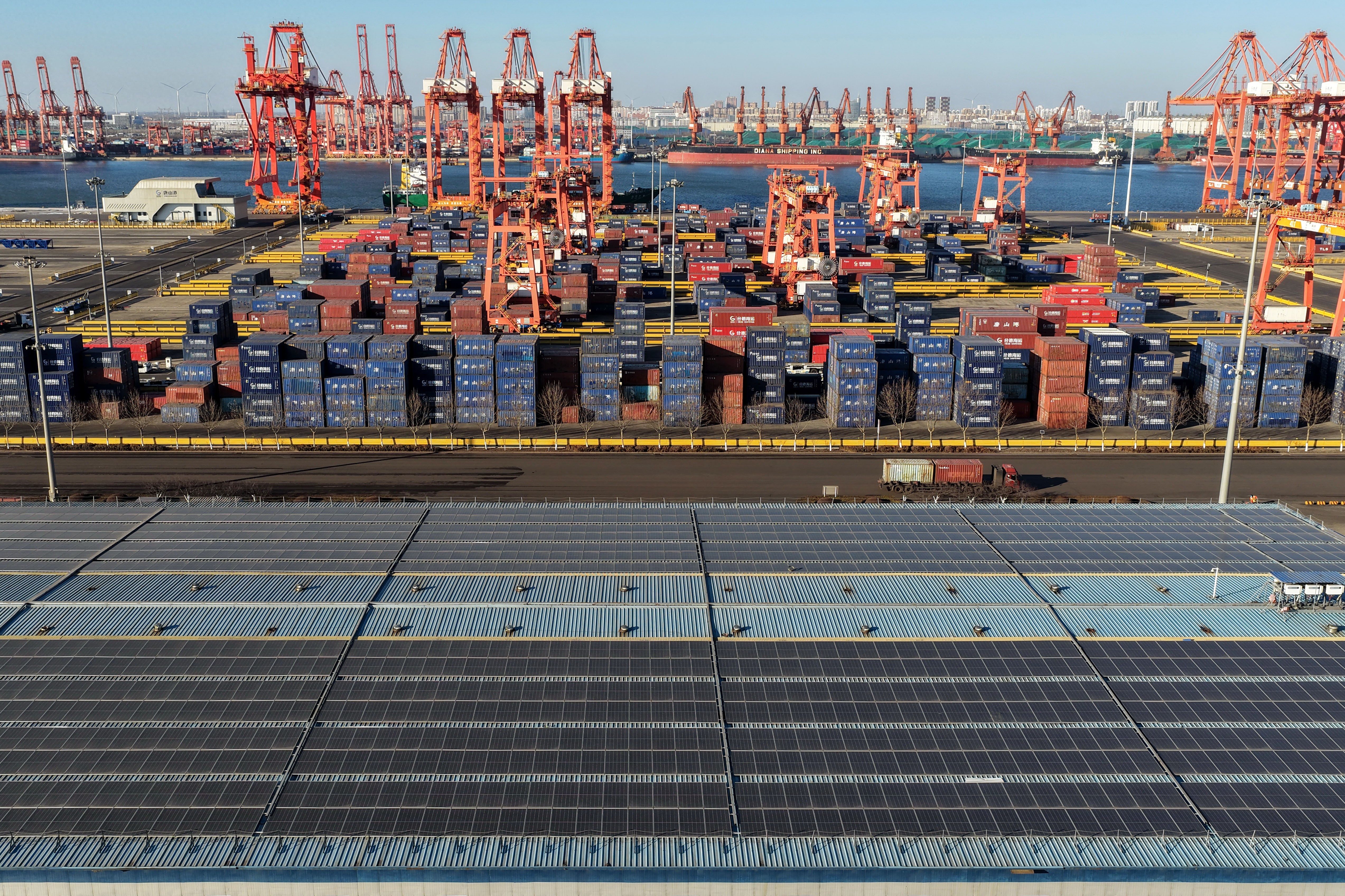 Photovoltaic panels on the roof of a factory building in the Haigang Economic Development Zone of Tangshan City, taken on December 25, 2025 (Xinhua News Agency)