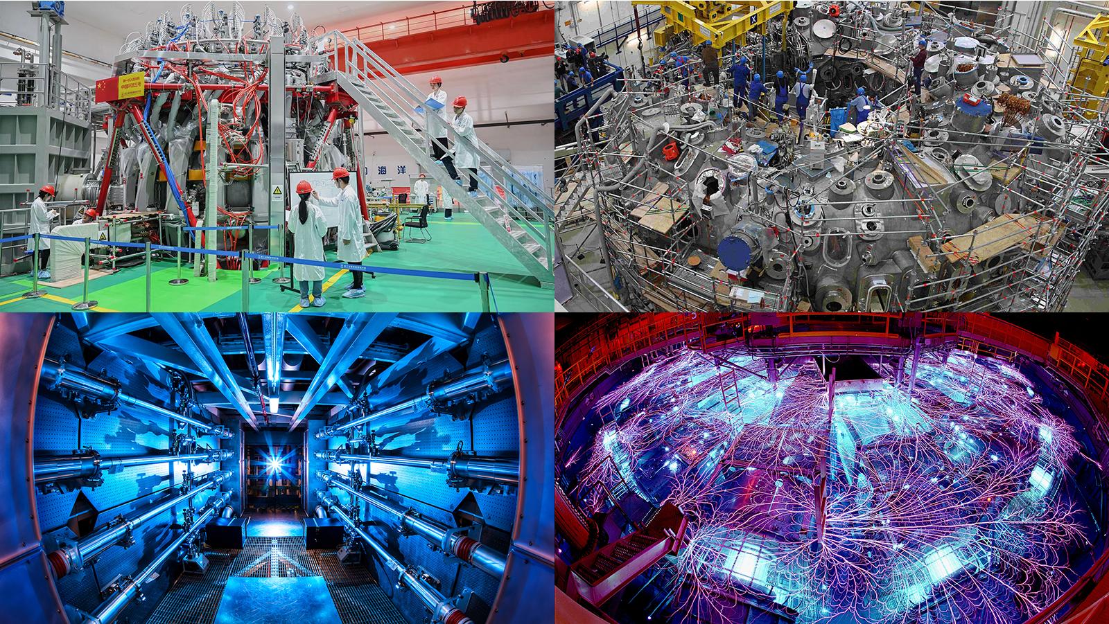 Four routes of controlled nuclear fusion, top left is the tokamak device (China's HL-2A); top right is the stellarator device (Wendelstein 7-X); bottom left is the laser-controlled nuclear fusion device (National Ignition Facility); bottom right is the Z-pinch device (Z Pulsed Power Facility)