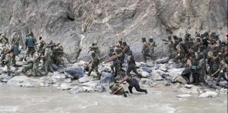 Chinese PLA driving back Indian troops that crossed the border