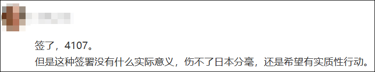 Some netizens think: "Such a signature has no practical significance, it cannot hurt Japan even a bit, I hope there are more substantive actions." In response, some netizens said, "Although the symbolic meaning is greater than the practical significance, expressing your own feelings is still necessary."