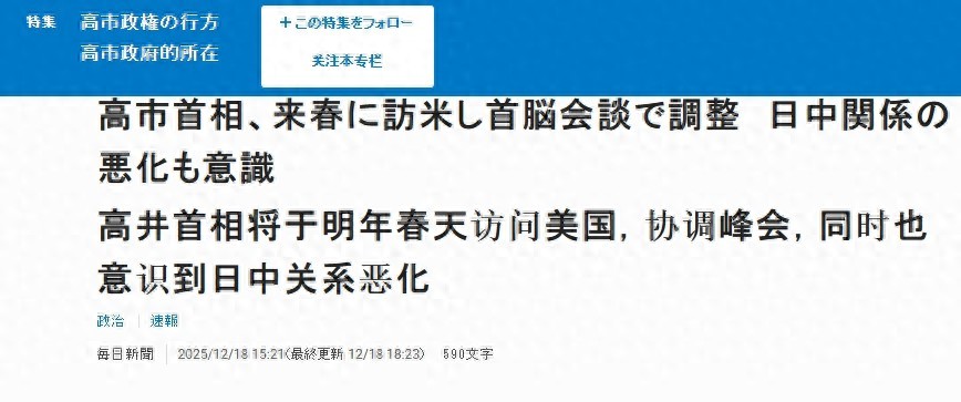 On December 18, Japanese media outlet "Mainichi Shimbun" quoted several Japanese government officials as saying that Japan has begun coordinating the arrangements for Takahashi Sanae's visit to the U.S. next spring and her meeting with Trump.