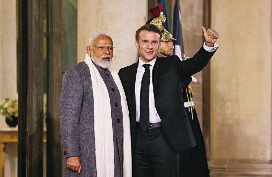 On February 10, in the Elysee Palace in Paris, France, French President Macron (right) and Indian Prime Minister Modi were preparing to attend a welcome banquet. The two-day Artificial Intelligence Action Summit began on February 10 at the Grand Palais in the capital city of Paris. Source: "Global" magazine