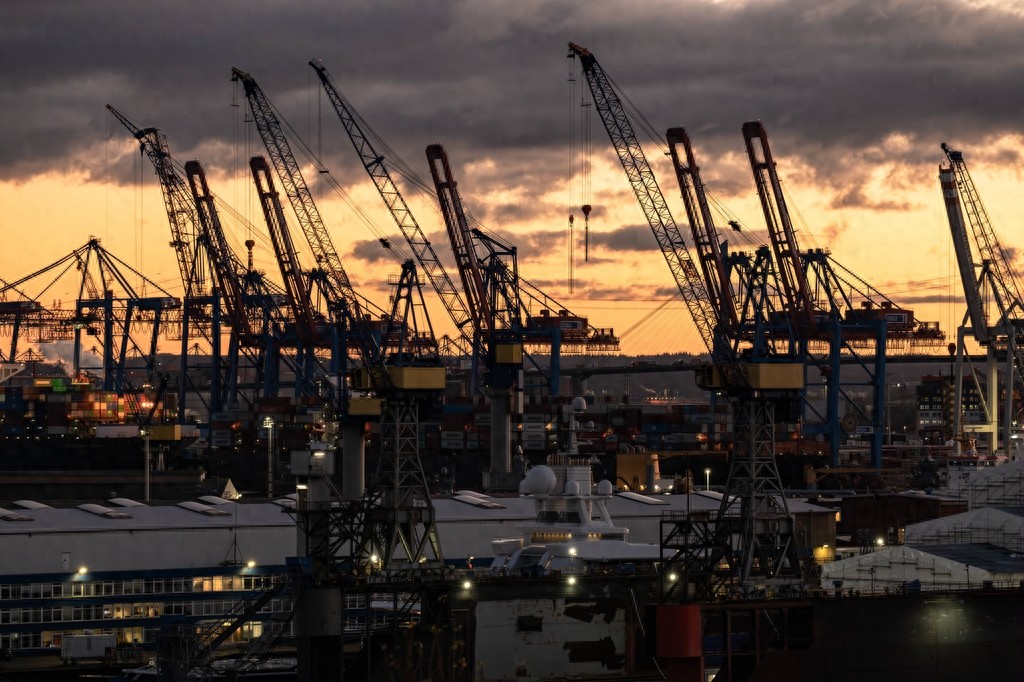 The sunset view at the Blohm + Voss shipyard in Hamburg, Germany IC Photo