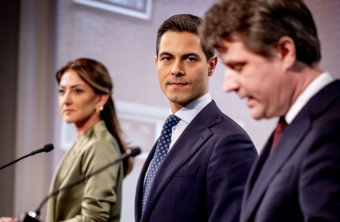 On January 30, the leader of D66, Rob Jetten (center), along with the leaders of the Liberal Party, Diederik de Vries, and the Christian Democratic Appeal, Henry Bontenbal, announced their joint governing agreement named "Start," declaring the formation of a minority cabinet. Oriental IC