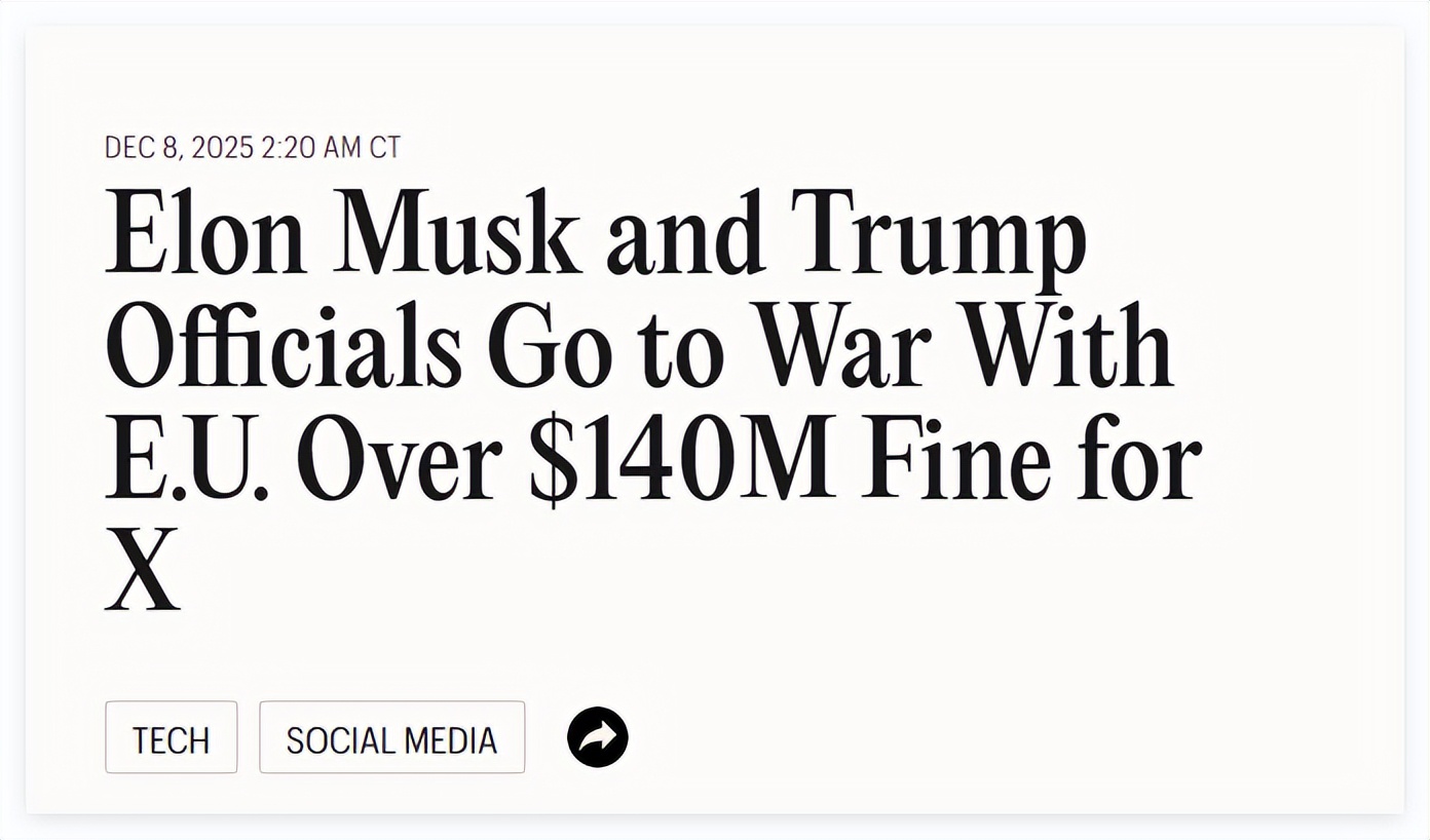 The first spark of this verbal conflict was ignited by the US Vice President Vance. After the news that the EU decided to fine the X platform $140 million for violating social media regulatory rules was released, Vance posted a message on December 5th, condemning the EU for trying to force X to restrict freedom of speech, and called the regulations penalizing X "garbage".