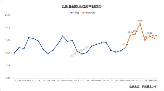 Additionally, according to DAST monitoring by Flight Manager, the cancellation rate for flights to Japan in the next week will reach 21.6% on December 27, the highest value in one month.