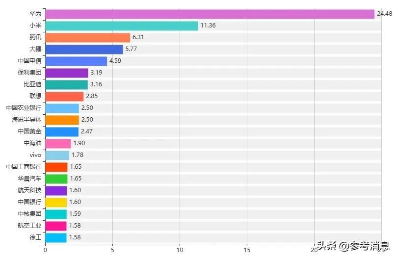 Specifically, in this monitoring period, in this dimension, Xiaomi, Huawei, and China Telecom formed the "first tier," and the number of languages covered by this tier has significantly increased compared to the previous monitoring period. Tencent, Poly Group, Lenovo, HiSilicon Semiconductor, and China Gold formed the "second tier." Overall, the number of languages covered by the "second tier" remained the same as the previous monitoring period.