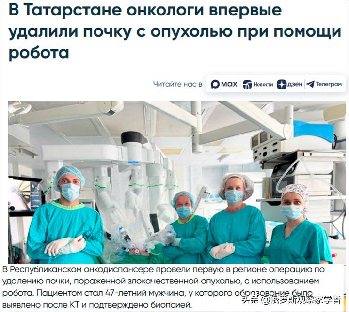 Russia also has many excellent cases. In June 2025, experts at the Tatarstan Republic Clinical Oncology Hospital performed a kidney removal surgery using a robot. The operation was very successful, requiring no large incision and causing minimal trauma. The 47-year-old patient was discharged smoothly four days after the surgery.