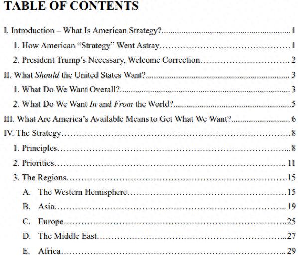 The report begins by sharply criticizing the traditional U.S. national strategy in the post-Cold War era: After the end of the Cold War, American foreign policy elites firmly believed that it was in America's best interest for the U.S. to permanently dominate the world... Our elites severely misjudged the willingness of the U.S. to bear permanent global burdens... They overestimated the U.S.' ability to maintain a large welfare, regulatory, and administrative system, as well as a large military, diplomatic, intelligence, and foreign aid system. They made extremely erroneous and destructive bets on globalization and so-called "free trade," leading to the destruction of the middle-class and industrial base that sustained the U.S. economic and military hegemony. They allowed allies and partners to shift defense spending onto the American people, sometimes even dragging us into conflicts and disputes that were crucial to them but irrelevant to us.