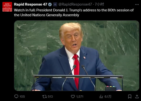 Trump's speech at the UN General Assembly, screenshot from Twitter