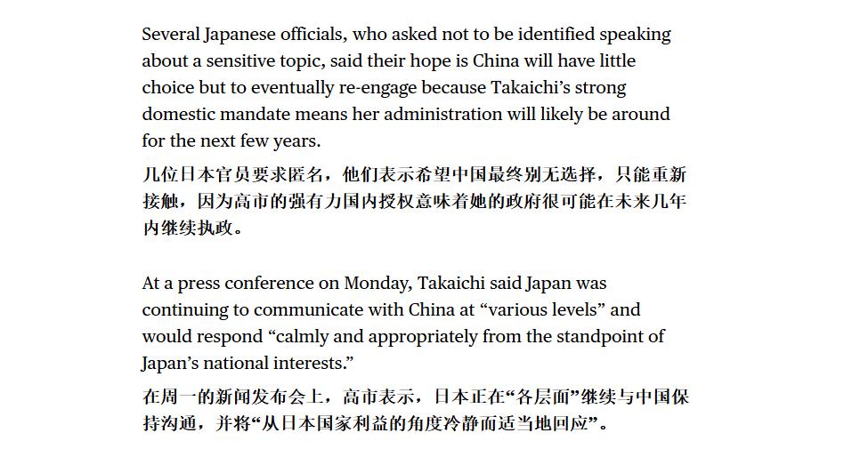 These past few days, I saw a report on Bloomberg in the United States. After Harushige's victory, several Japanese officials who did not want to reveal their identities expressed their pride in interviews, saying, "Harushige has gained such a solid long-term governing authority in Japan. We hope China eventually 'has no choice' but to lower its stance and come back to contact Japan."