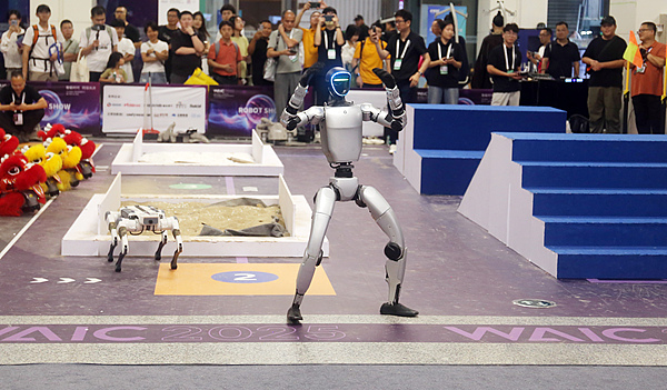 Unitree demonstrates humanoid robots and robot dogs performing dance, tai chi, and lion dance at the WAIC World Artificial Intelligence Conference. Visual China
