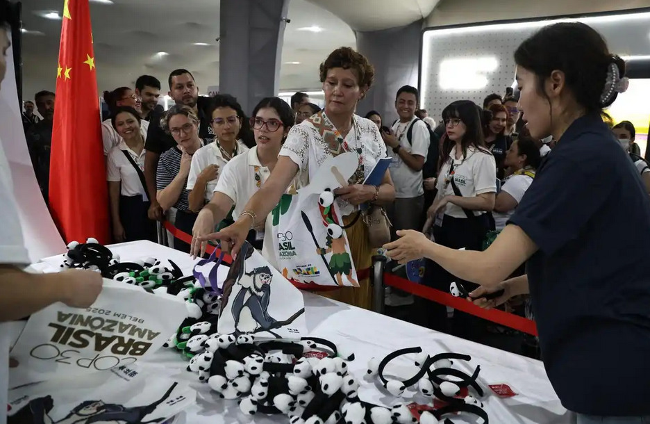On November 10, representatives at the COP30 "China Corner" in Belem, Brazil, received souvenirs. Xinhua News Agency