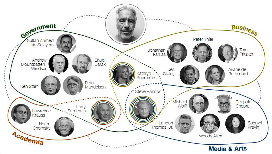 The "network of power" involving Epstein covers multiple fields, CNN map