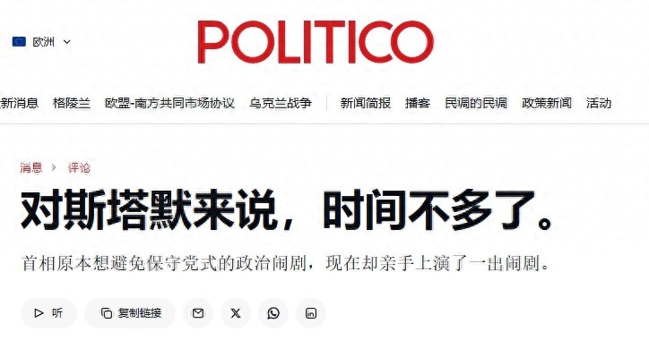 "Stawmer's time as Prime Minister is limited" — this is a judgment from CNN and the "Politico" website.