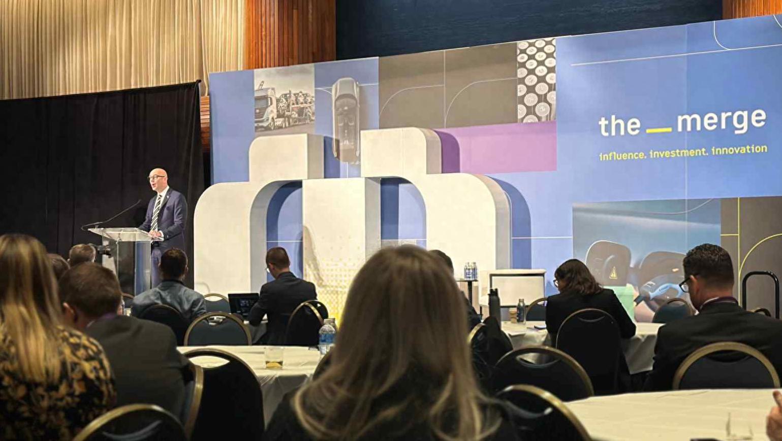 Bob Lee speaking at the Automotive Innovation Alliance event Japan Economic News