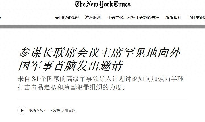 On the 23rd, The New York Times reported that General Dan McKeon, chairman of the US Joint Chiefs of Staff, is expected to convene a "rare meeting" in Washington on February 11 with military representatives from 34 countries in the Western Hemisphere, including extraterritorial countries such as the UK, France, and Denmark, which have territories in the Western Hemisphere.