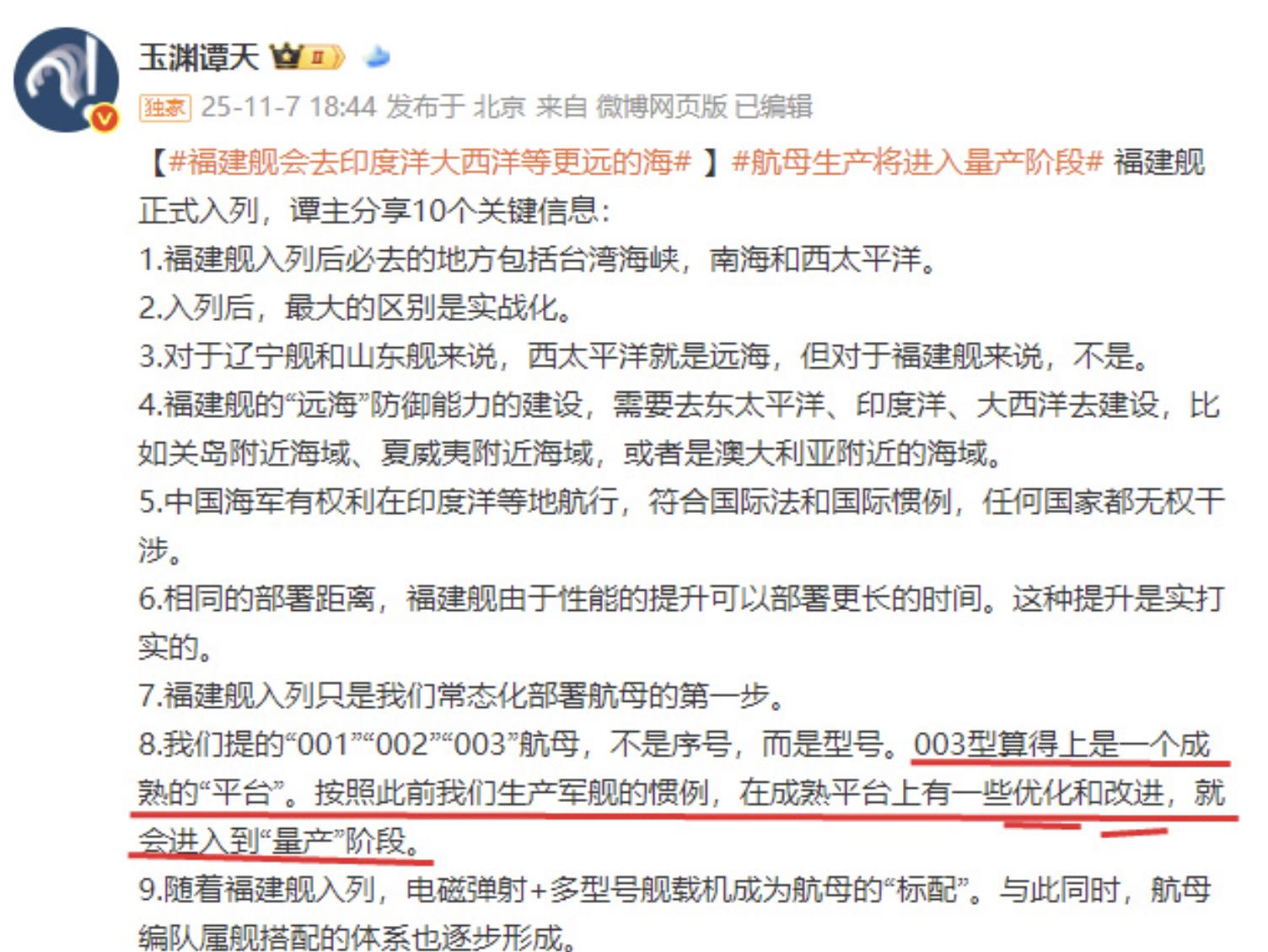 As for the 003-type conventional power electromagnetic catapult aircraft carrier, we will definitely summarize the shortcomings of the first ship, Fujian, and re-optimize and strengthen it. With the support of the total segment construction method, we can even compress the time from construction to commissioning of the 003-type aircraft carrier to five years.