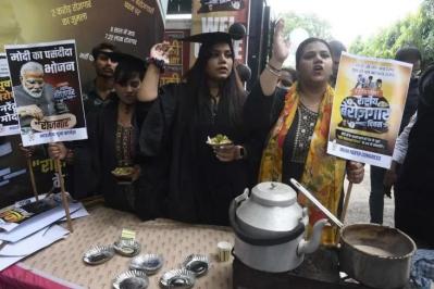 On September 17, 2023, members of the Youth Congress in India held a symbolic protest in New Delhi against the increasingly severe unemployment problem. Photo credit: SHIV KUMAR PUSHPAKAR
