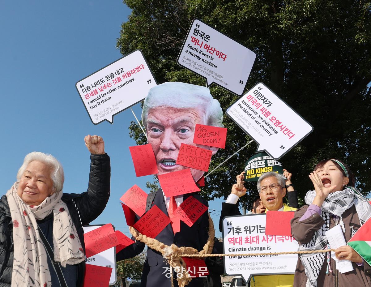 From the expressions and statements in the news video, it can be seen that the golden crown had its effect, and Trump was very satisfied with the results of his visit to South Korea. However, during Trump's stay, protests against Trump erupted in Seoul, Busan, and other places. Protesters criticized the agreement for over-accommodating Washington and called on the government to safeguard South Korea's economic sovereignty. The slogan "no king, no trump" that was prevalent in the United States also spread to South Korea. Accepting the golden crown deepened the critics' stereotypical view of Trump.