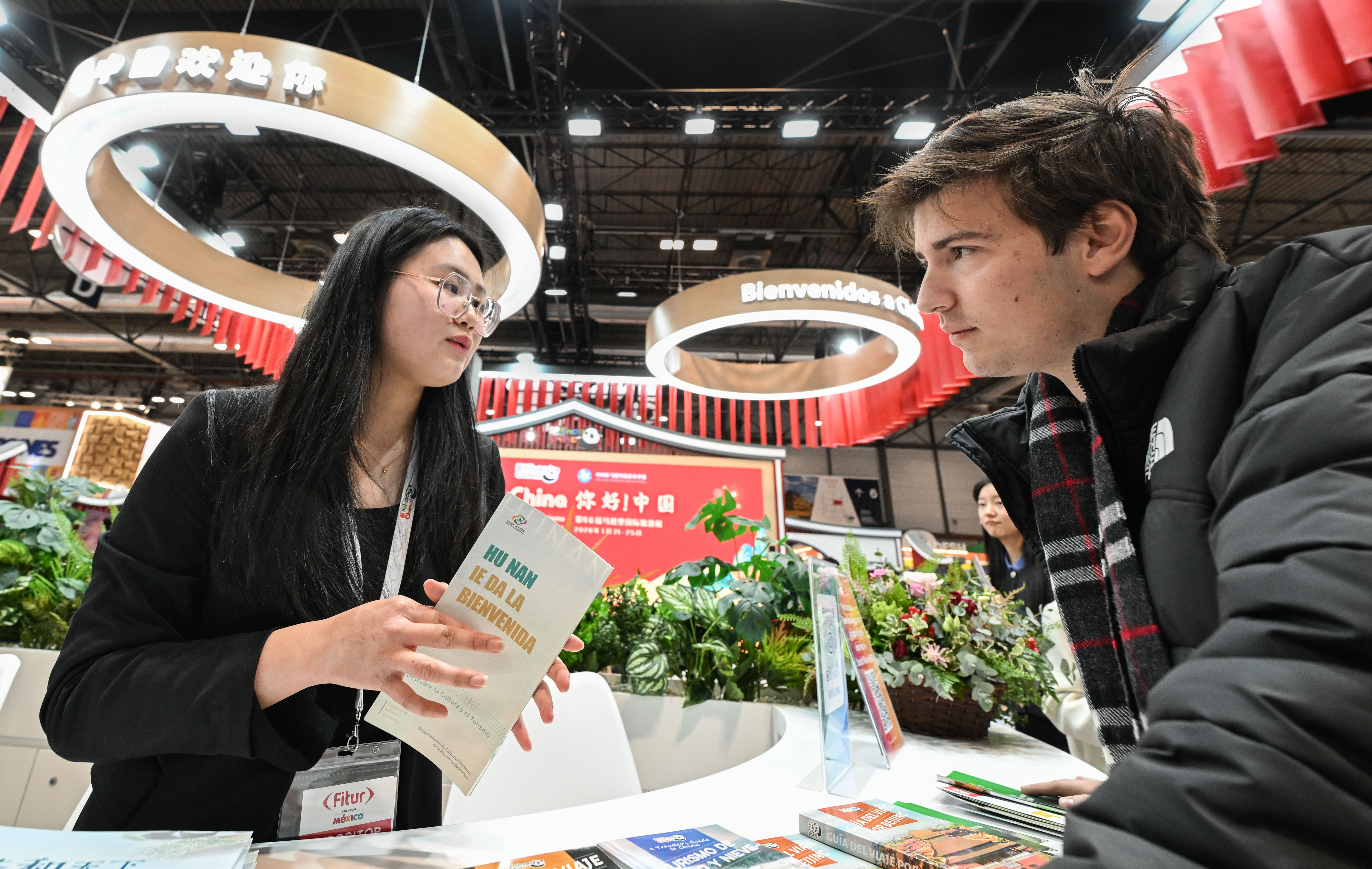 On January 22, a visitor consulted at the China Pavilion of the Madrid International Tourism Fair in Madrid, Spain. (Cheng Min photo)