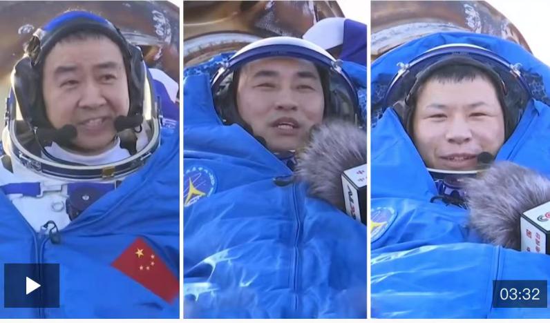 Photo of the safe exit of astronauts Chen Dong, Chen Zhongrui, and Wang Jie