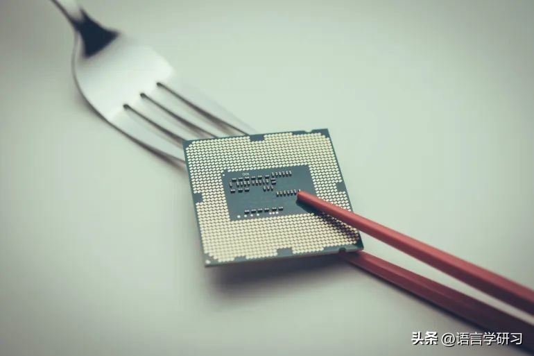 A Western fork and a Chinese chopstick fighting for a central processing unit symbolize the technological confrontation between the East and the West in the chip industry (Social media)