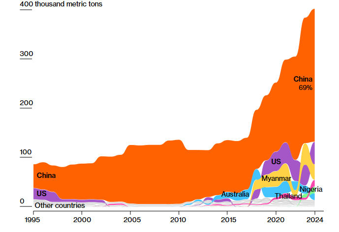 Bloomberg mentioned that China is the main producer of rare earths globally, accounting for nearly 70% of global production in 2024.
