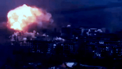 (Photo caption: Air raid with FAB bombs on Mirnohrad.)